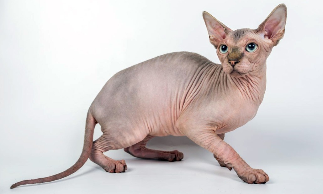 Когда котенок такой породы только появляется на свет, то он практически ничем не отличается от обычного пушистого питомца. Но спустя несколько недель он активно начинает терять шерсть и обретать свой необычный вид.