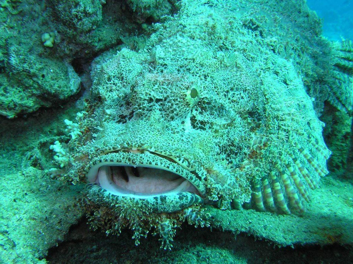 Рыба-камень – весьма спокойный обитатель водных просторов, который никогда не нападает первый. Яд использует исключительно в целях защиты. Однако если все же человек поражен её ядом то наступает мгновенный паралич, сопровождающийся адскими болями, и постепенное отмирание тканей.