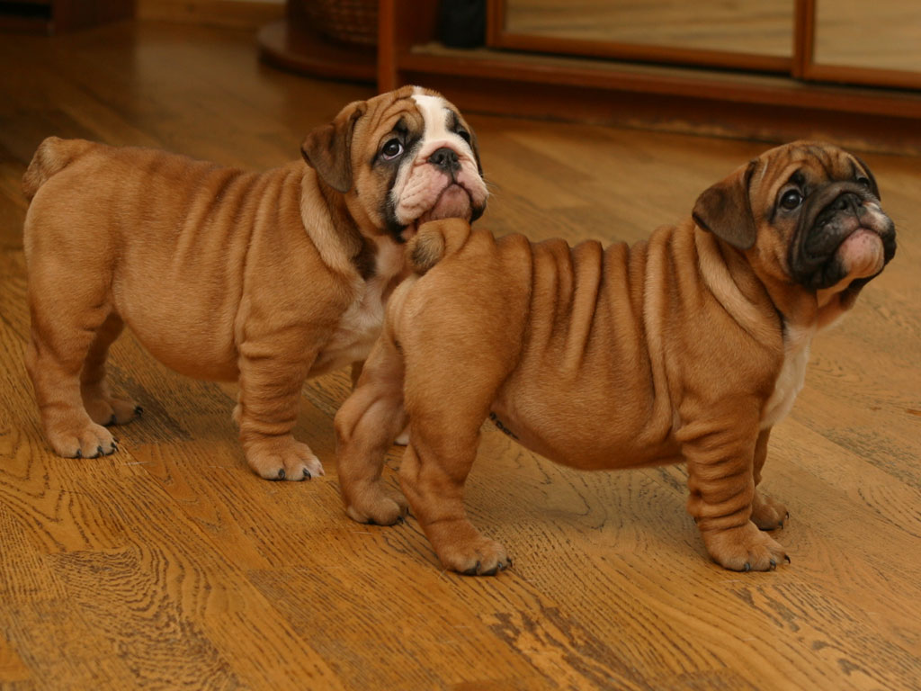 На фото щенки английского бульдога