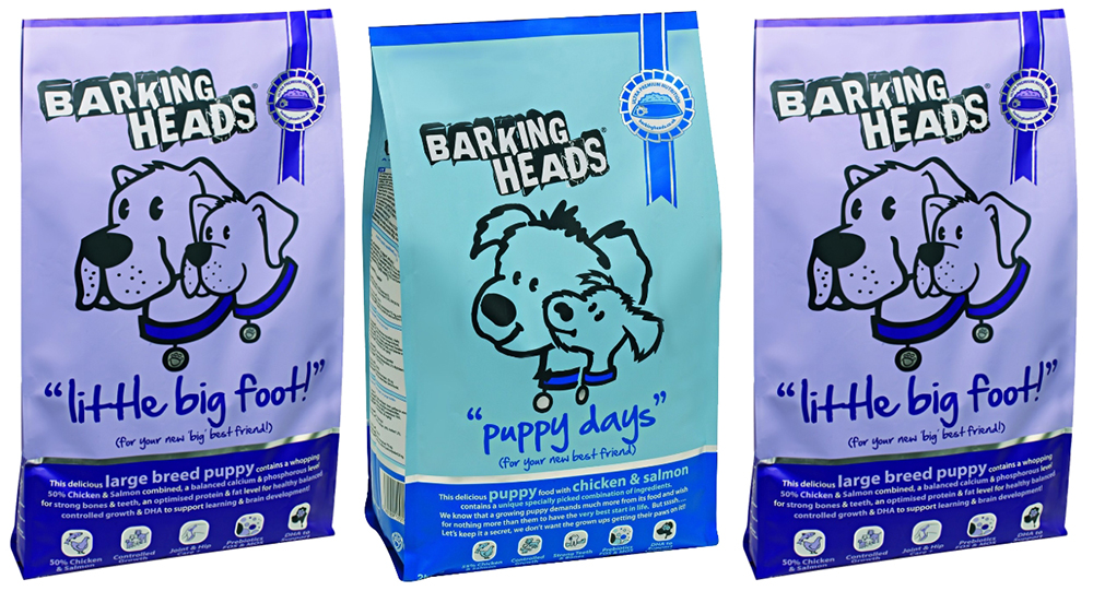 - Barking Heads Puppy – разработан для щенков всех пород. Основным компонентом состава и источником протеина является мясо цыпленка и лосося, дополненное рисом.