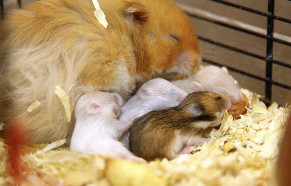 Новорожденные хомячки нуждаются в заботе матери