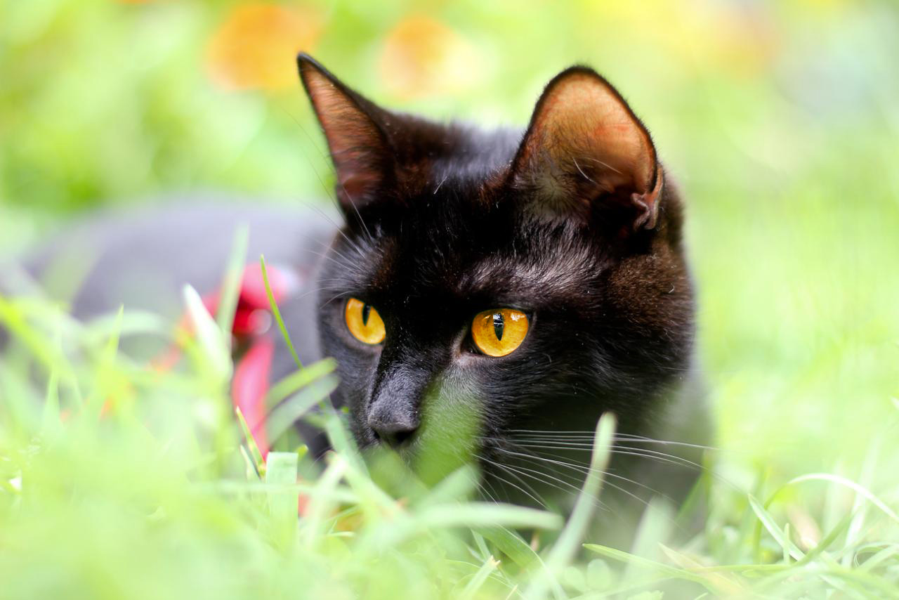 Для выгула коту понадобится шлейка и поводок. Желательно выезжать туда, где не будет собак, так как кот может не понять возможной опасности и побежит играть.