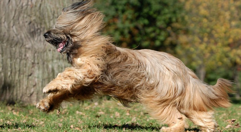 Собака породы бриар активна, она с удовольствием бегает и играет. Нужно 3-4 часа в день выгуливать питомца, выводить его на природу, где пес порезвится вволю без поводка.