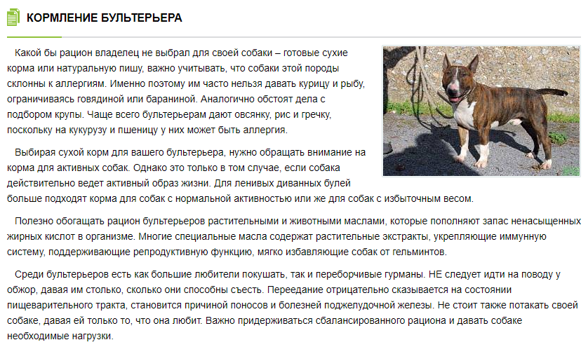 Это не касается мяса, молочных и субпродуктов. Стремительно растущие щенки мини-бультерьера до 4-х месяцев должны получать телятину и нежирный творог ежедневно для укрепления костяка.