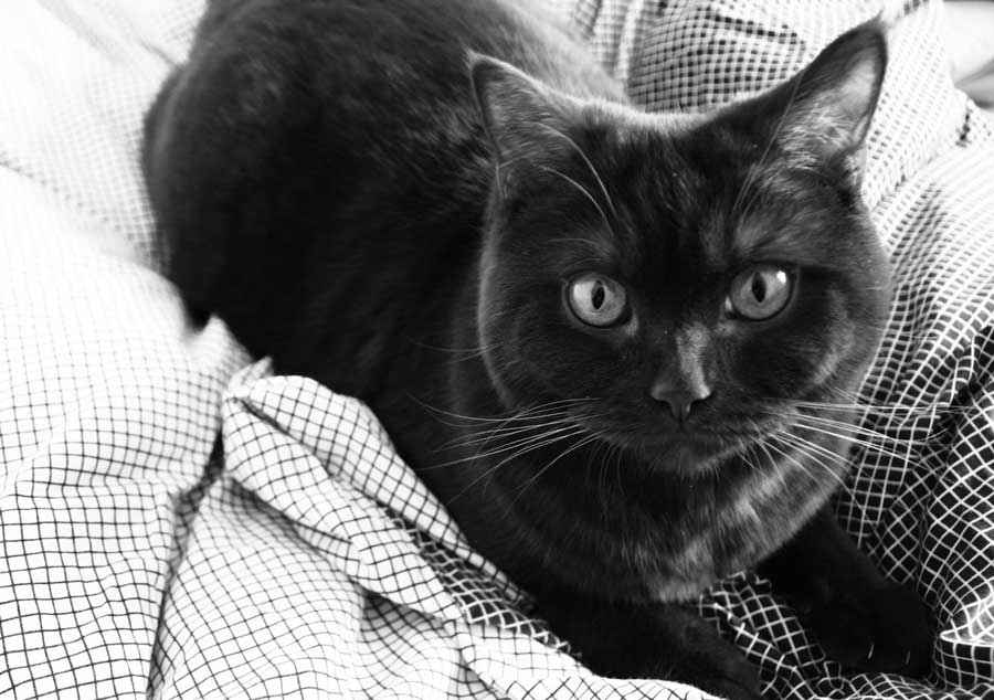 Кошка с «богатой» внешностью ‒ так можно в двух словах охарактеризовать британцев. Тяжёлый костяк, отличные пропорции, щекастая округлая голова с небольшими ушками, огромные глаза обязательно яркого оттенка, плотная шубка ‒ настолько плотная, что шерстинки расположены перпендикулярно к коже… Британец великолепен в любом окрасе! Правда, чёрных британцев не так много: под влиянием моды и небезызвестной рекламы, поклонники породы предпочитают «классику» ‒ голубых или серебристых животных.
