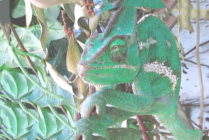 В домашних условиях рептилии часто болеют и подвержены стрессам. За ними нужен тщательный и особый уход. Хамелеоны отличаются неподражаемой красоты внешностью. Особи способны менять окрас. Вначале их жизни тело имеет зеленовато-салатовый оттенок, который в дальнейшем разбавляется широкими полосами. Изменение окраса пресмыкающегося зависит от его настроения и статуса.