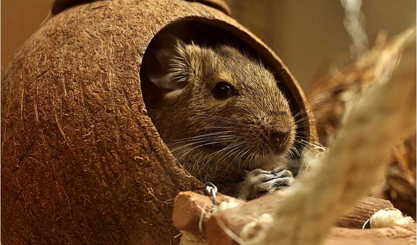 - дегу довольно пуглив, любой посторонний звук может причинить ему вред.