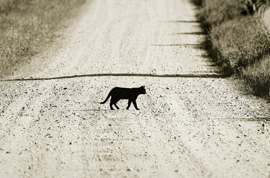 - Еще наши прадеды считали, что запугать или сбить с толку нечистую силу, которая прячется в черной кошке, можно одним простым, но очень эффективным способом. Пройти участок дороги, который перебежало животное, спиной вперед. Считалось, что такие действия запутывают нечистого, и человек не попадает под его злые чары.