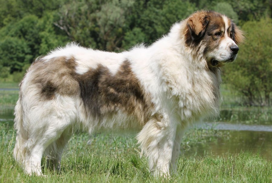 Первые упоминания об этой породе появились еще за тысячу лет до нашей эры, однако официально пиренейского мастифа признали только в 1946 году. Специалисты уверены в том, что эту породу вывели финикийцы для того, чтобы собака была надежным сторожем и пастухом. Высота кобелей достигает 80 сантиметров в холке, при этом вес самца составляет порядка 70-75 килограмм. Раньше хозяева этих огромных собак называли их «ласковыми гигантами». Дело в том, что эта собака очень терпелива и легко привязывается к своим хозяевам, способна защитить детей от чужаков. Думаю, вряд ли кто-то захочет подойти к ребенку, когда возле него боевой гигант, отпугивающий лаем и огромными зубами.