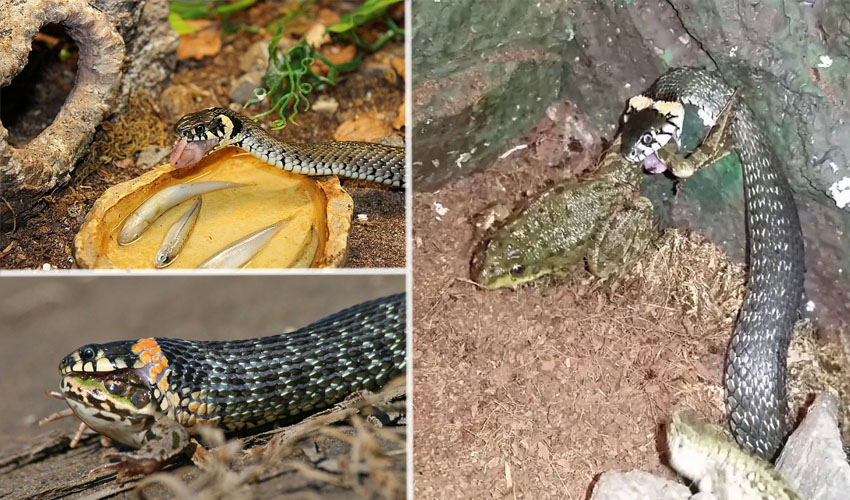 Начинающему серпентологу следует предварительно ознакомится, чем можно кормить ужа в домашних условиях. Деликатесом для водяных рептилий являются: