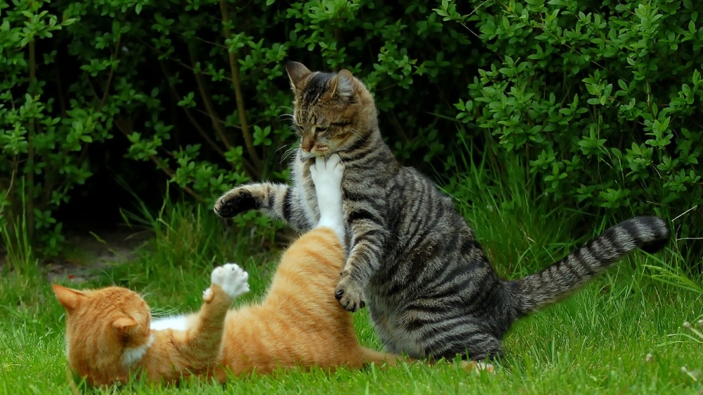 Во время игр коты и кошки не причиняют друг другу боли. Драка же сопровождается нешуточными травмами и ранениями, а в процессе кошачьи будут громко шипеть, фыркать и даже издавать заунывные мявы. И, в отличие от умилительных игр, оказывающих положительное воздействие на организм котов, драки – ничуть не полезны, а, напротив, вредны.