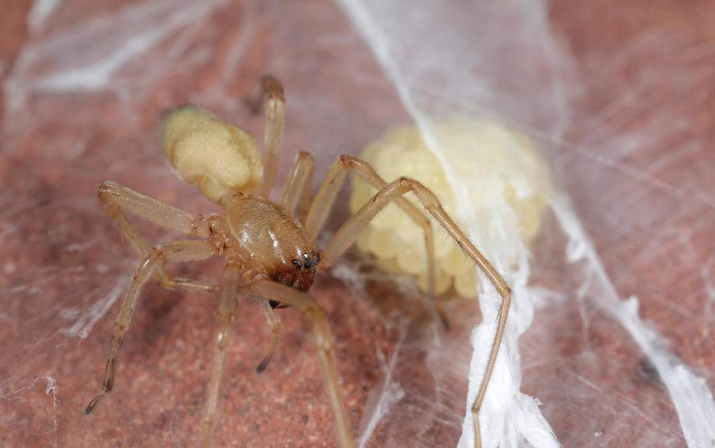 Самки обычно спариваются только один раз, через 14 дней они производят несколько паутинных мешочков с яйцами (целых 5, каждый из которых содержит приблизительно 40 яиц). Кладку невозможно заметить, она скрывается в закрученном листе дерева или кустарника.