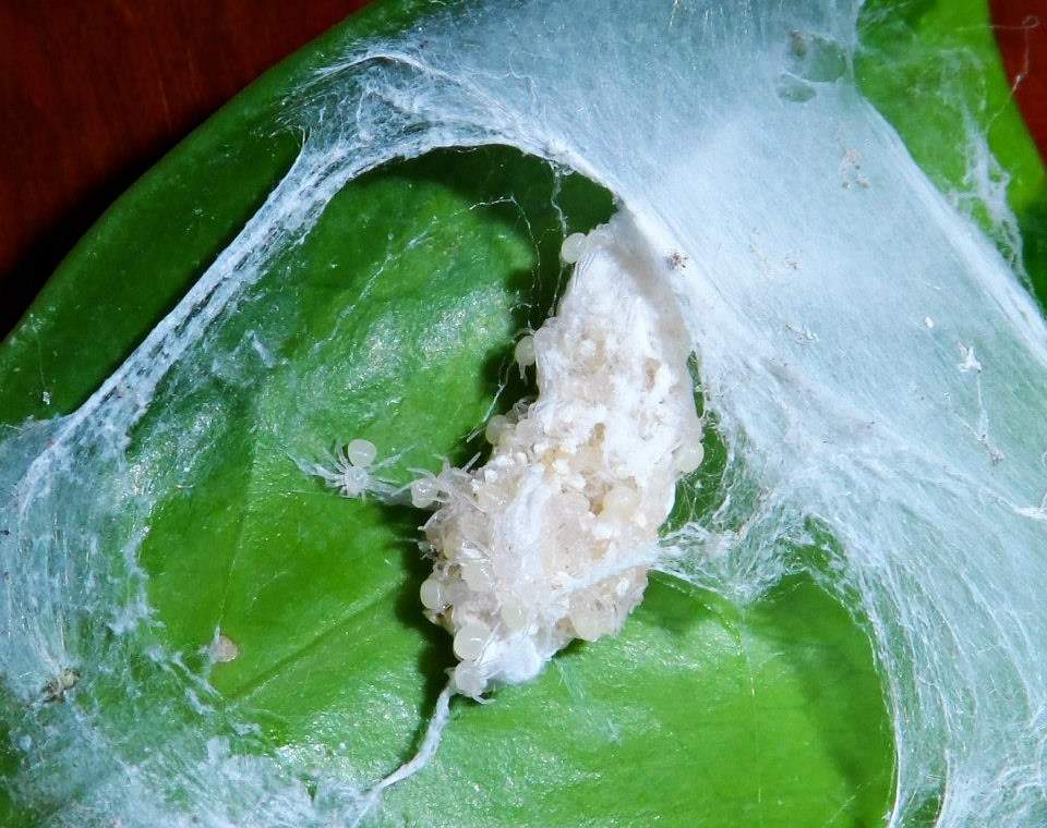 Самки обычно спариваются только один раз, через 14 дней они производят несколько паутинных мешочков с яйцами (целых 5, каждый из которых содержит приблизительно 40 яиц). Кладку невозможно заметить, она скрывается в закрученном листе дерева или кустарника.