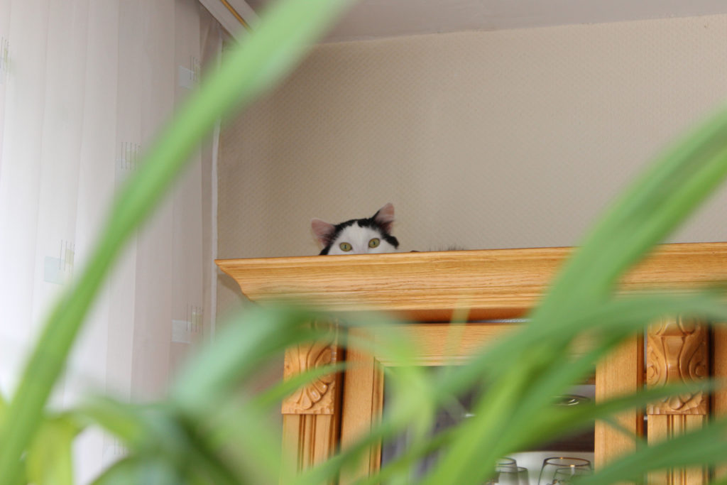 2. Посмотреть сверху на шкафах, сервантах, стенках. Возможно именно оттуда ваш питомец внимательно наблюдает за вашими действиями.