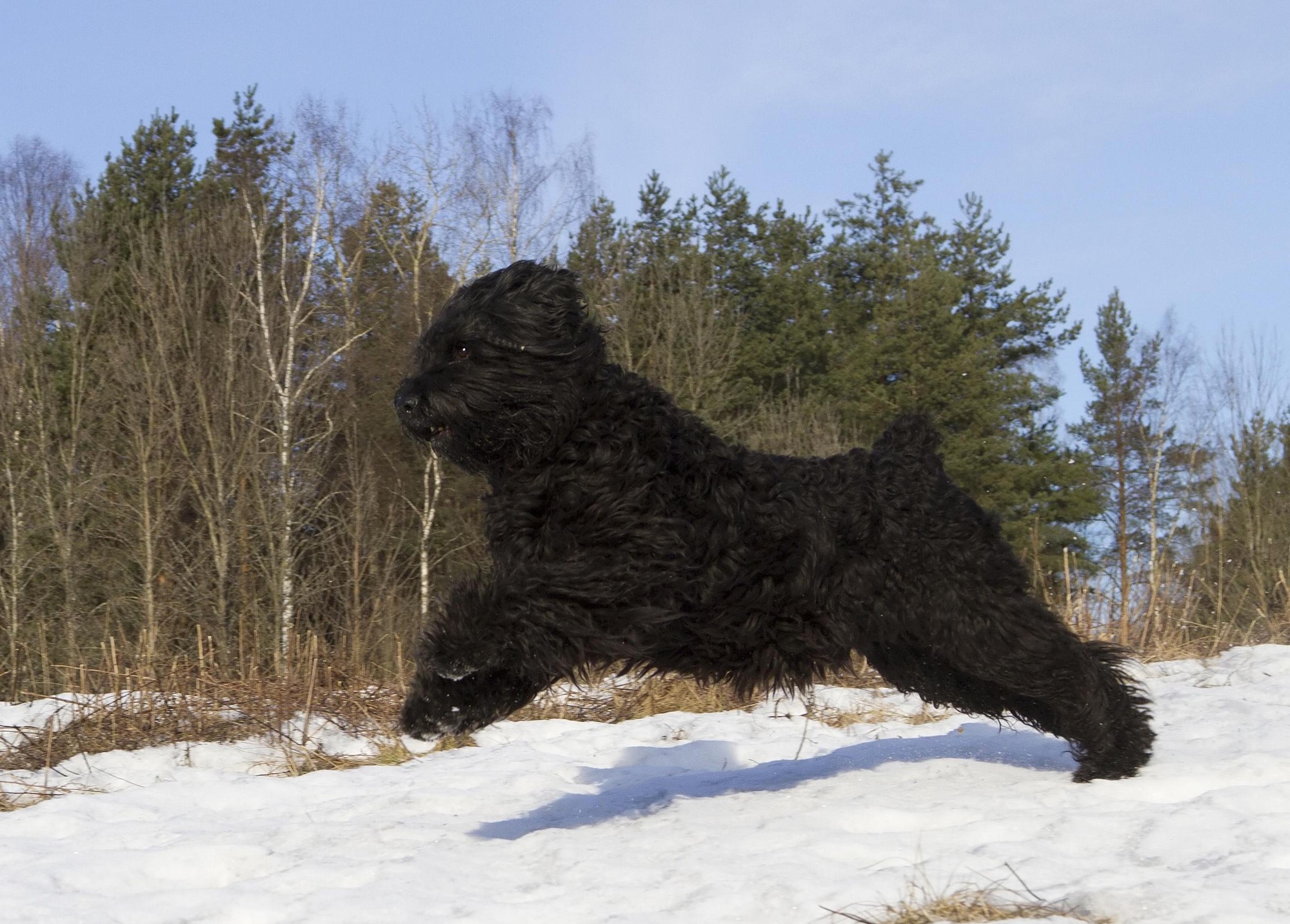 Русский черный терьер – самая молодая отечественная порода, которая стала не только надежной служебной собакой, отважным сторожевым псом, но и домашним компаньоном. Животное легко переносит суровые условия обитания, неприхотливо в уходе