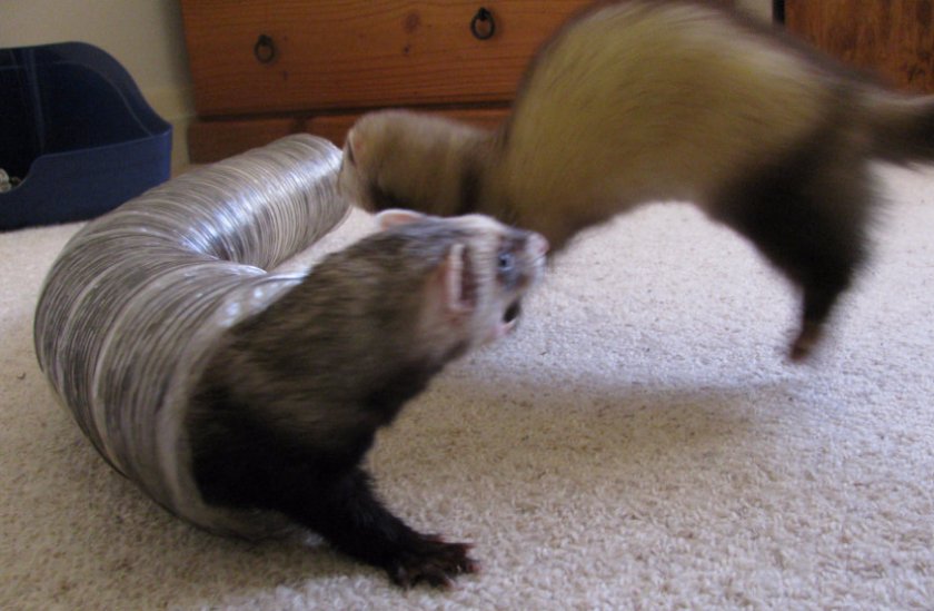 - Это чистоплотные животные, легко приучаются ходить в лоток, что существенно облегчает их содержание в городской квартире: нет необходимости выгуливать хорька для того, чтоб он справил естественные надобности. То есть, по утрам и вечерам не тратится время на моцион зверька.