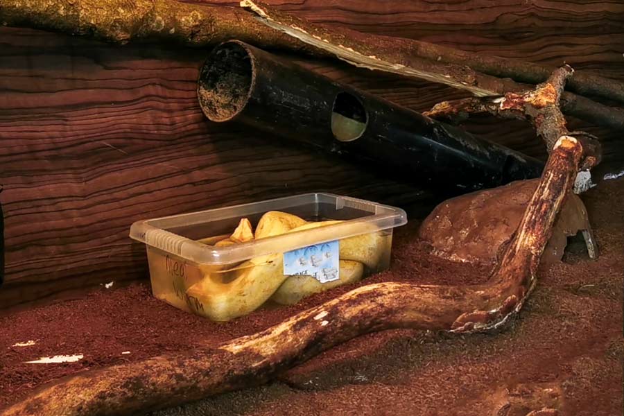 В жилище необходимо поставить поилку, в которую змея может помещаться полностью, каменное или деревянное укрытие, где удав может отдохнуть и спрятаться от света. Хотя для этих змей наличие укрытия не является обязательным условием.