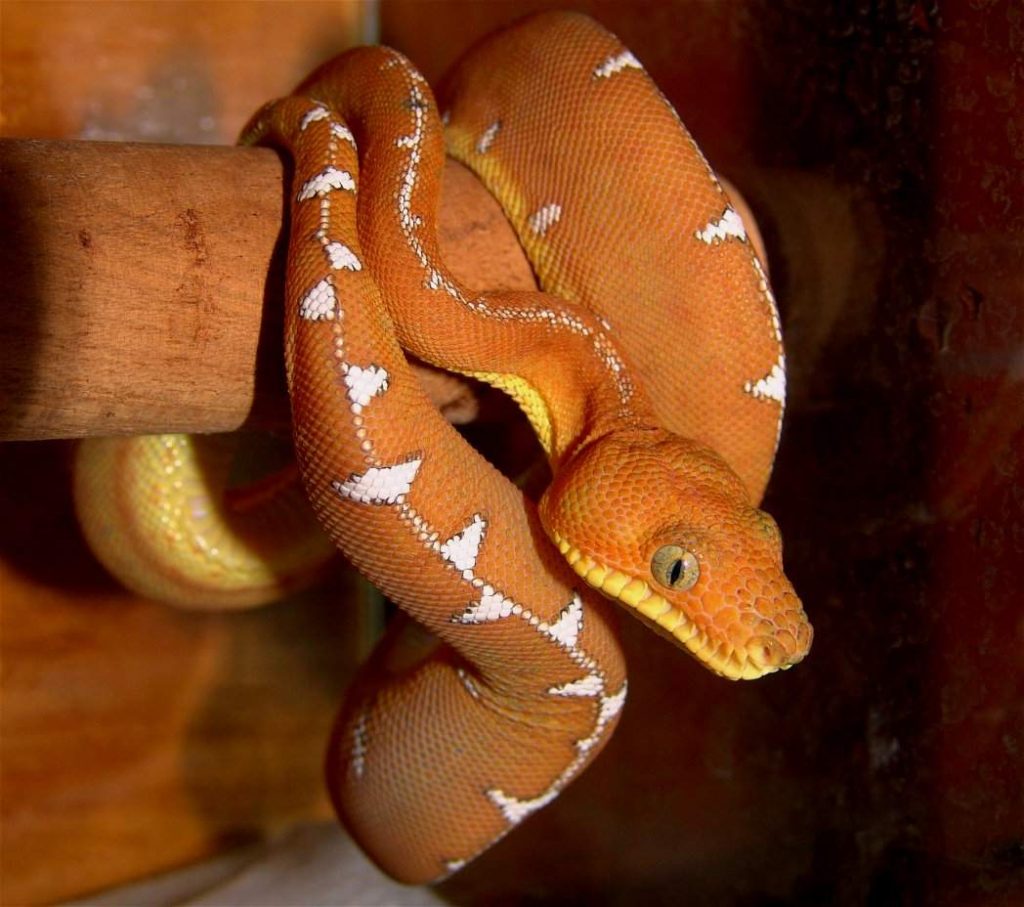 В качестве украшения и для того, чтобы змея была физически активной, террариум необходимо оборудовать корягами, лианами, полками, по которым животное может ползать.