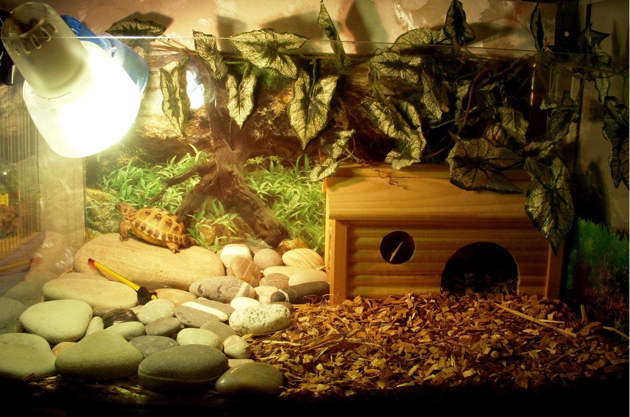 - Можно ли поставить в террариум растения? — Лучше этого не делать, т.к. растения нуждаются в поливе, а некоторым видам (напр. среднеазиатская) влажность не нужна. Вдобавок, черепаха может быстро съесть растение, если дотянется.