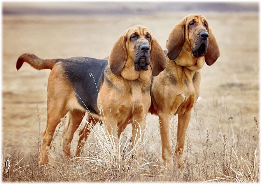 Вислоухие охотничьи собаки — бладхаунды появились задолго до большинства пород. Считается, что выведены они были еще в Древней Греции, откуда были вывезены дальше на Запад, в Римскую Империю, а в дальнейшем в «Варварские» королевства. Более-менее современные параметры и вид порода приобрела после разведения в аббатстве святого Губерта в Арденнах. Монахи верили, что вывел этих собак сам святой Губерт, которому они немало помогали на охоте.