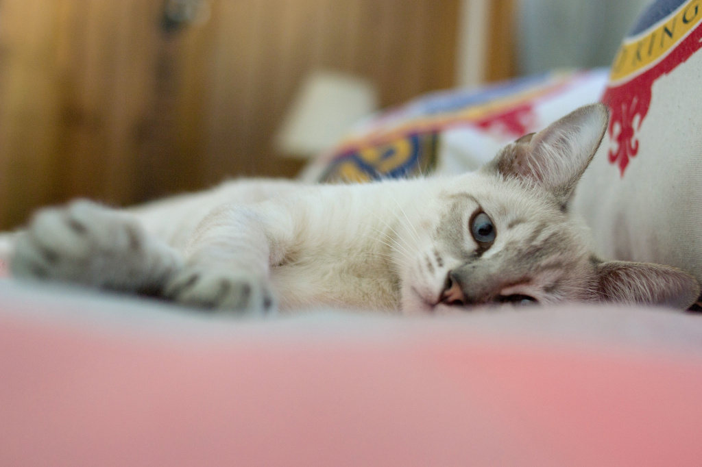 - питомица становится вялой, плохо ест, мало двигается, больше спит;