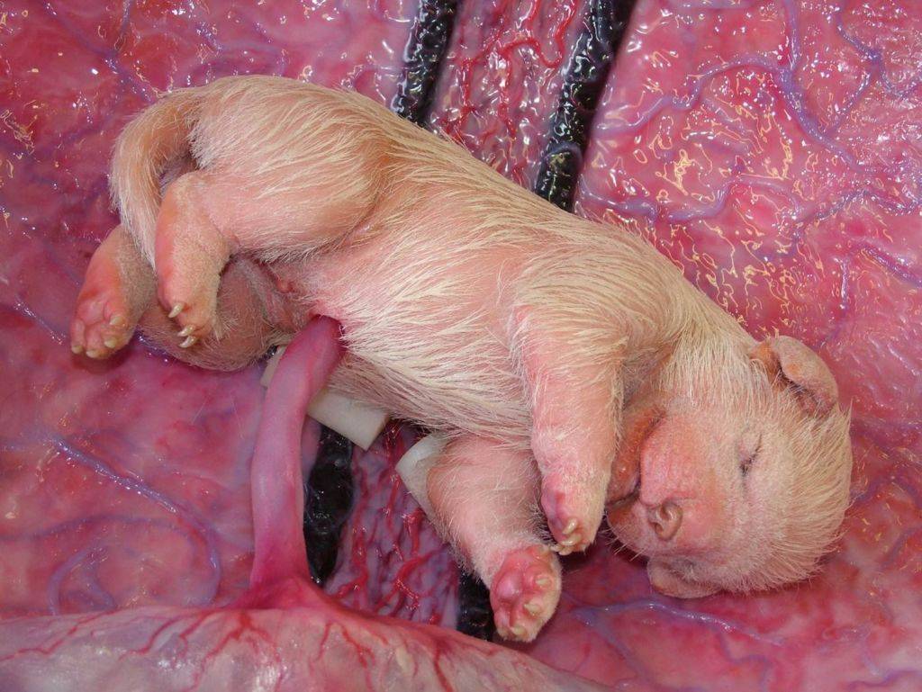 Пальпация — это нащупывание плодов пальцами через брюшную стенку. Оптимальные сроки проведения — 28-34 день беременности, когда плодные пузыри упругие на ощупь и имеют округлую форму. Их можно даже подсчитать! После 35 дней зародыши вытягиваются в длину, и и их уже не так просто дифференцировать один от другого. На 50-55е сутки уже можно прощупать отдельные органы будущих щенков, но с большой точностью судить об их числе и положении все же затруднительно.