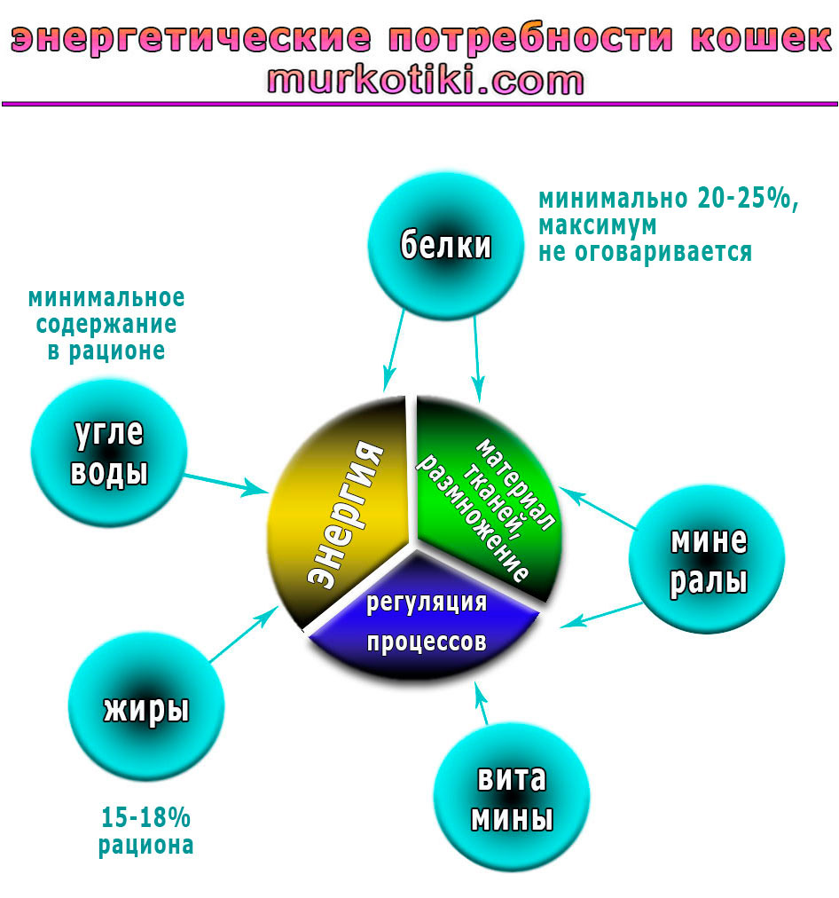 По соотношению белков, жиров и углеводов баланс в питании кошачьих должен быть следующим: