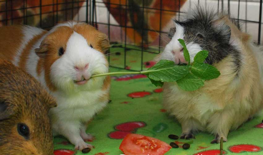 Особое внимание обращайте на то, какие растения вы даете свинке — не следует ее кормить травами, которые могут привести к раздутию живота. Зимой основным кормом для морской свинки является сено и солома