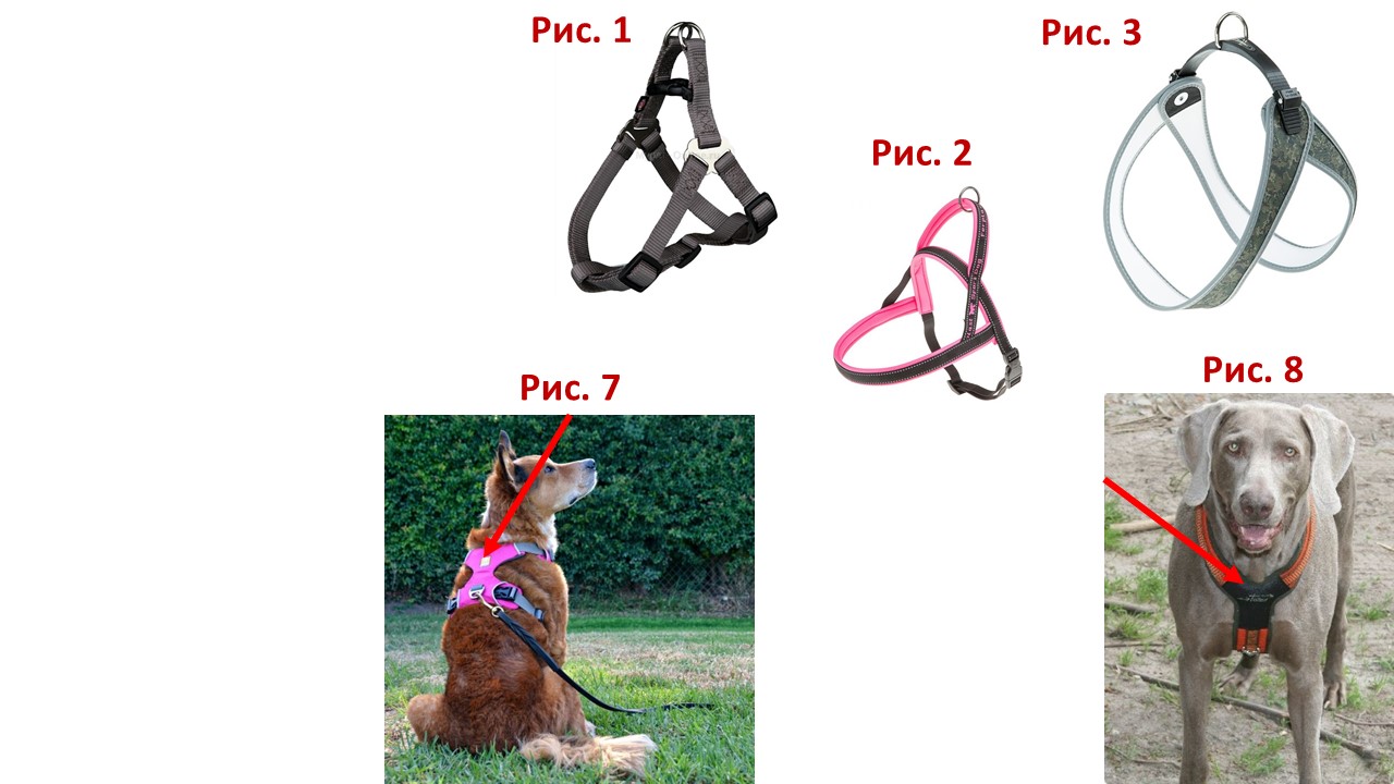 нам важно, чтобы на шею собаки ничего не давило.Спереди анатомически правильная шлейка имеет Y-образную форму (как на рис. 8)