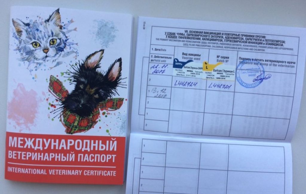 - ветеринарный паспорт с отметками о проведенных антипаразитарных обработках и прививках;