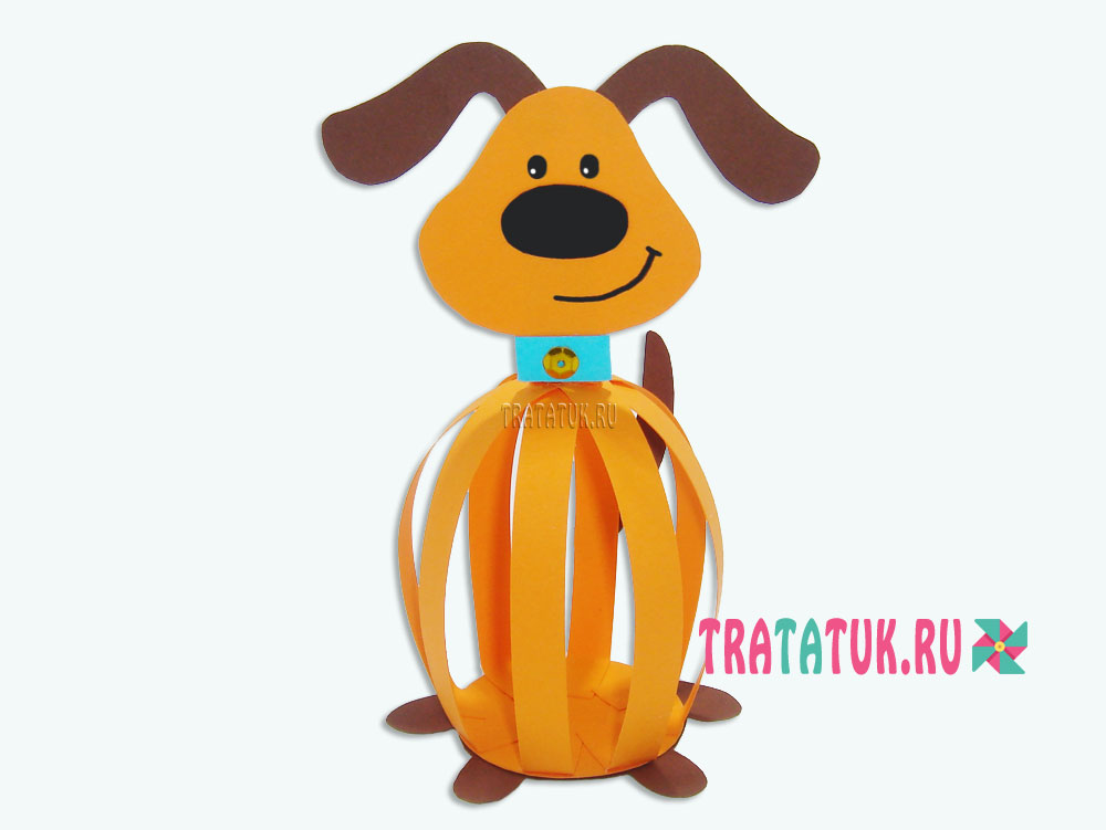 Еще одной отличной идеей поделки в этом году является собака из полосок бумаги. Работа легкая, творческая и разноплановая. В процессе дети могут развивать умение вырезать ножницами, склеивать бумагу, проявлять свои художественные таланты в рисовании собаки.