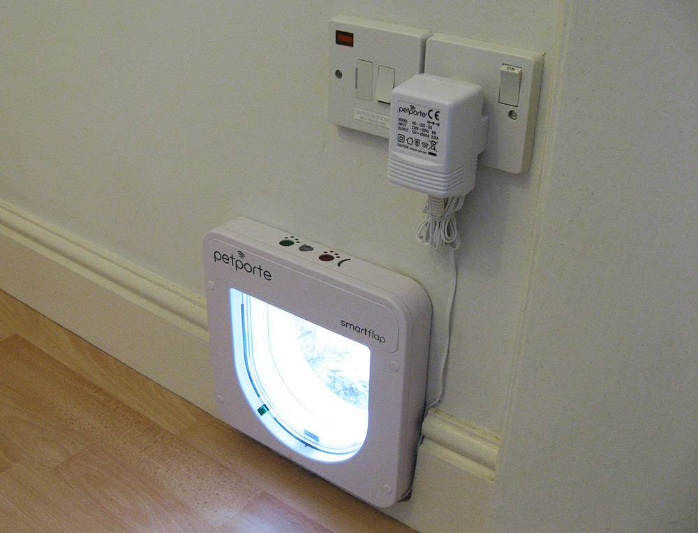 Вы также можете приобрести электронную дверцу для кошки, которая обнаруживает индивидуальный идентификационный микрочип в ошейнике кошки, чтобы бездомные кошки не смогли проникнуть в ваш дом.