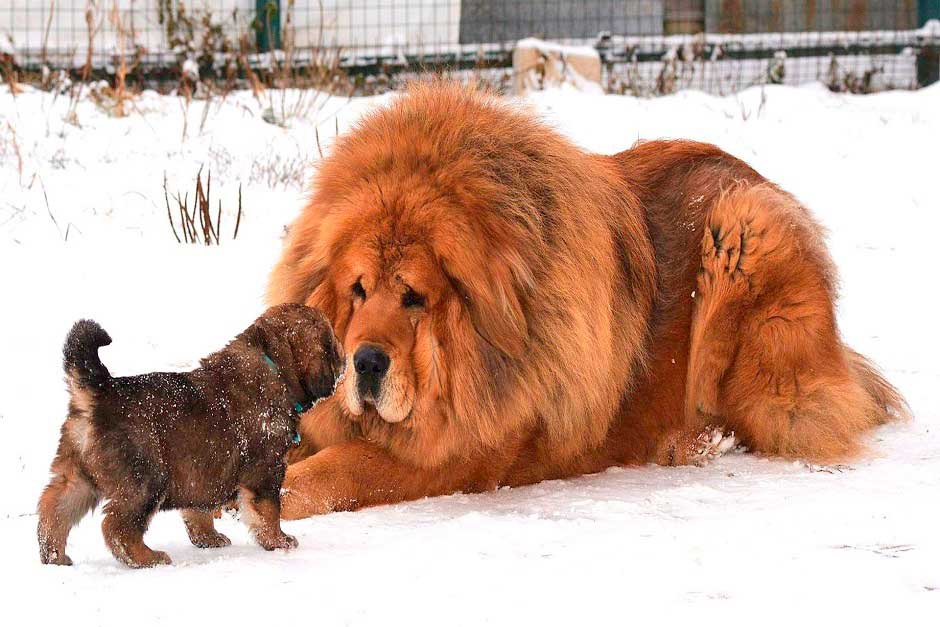 Гигантские собаки прекрасно осознают, насколько велики их размеры. Поэтому к более мелким существам они проявляют снисходительность. Они даже любят и опекают малышей. Например, могут взять в пасть котенка, не причиняя ему ущерба. Такое же отношение и к человеческим детенышам. Мастиф готов терпеть бесконечные ласки и шалости ребенка. Если он сделал собаке больно, она поморщится и предупредит, что такое поведение ей не по нраву. Взрослый пес никогда не обидит малыша. А вот у щенков может не хватить выдержки, они более эмоциональные и нетерпеливые. Поэтому стоит присматривать за играми молодых тибетцев с малолетними детьми. Они могут нечаянно разнести дом или не на шутку поссориться из-за игрушки. Но в целом отношения между тибетцами и ребятишками полны гармонии.