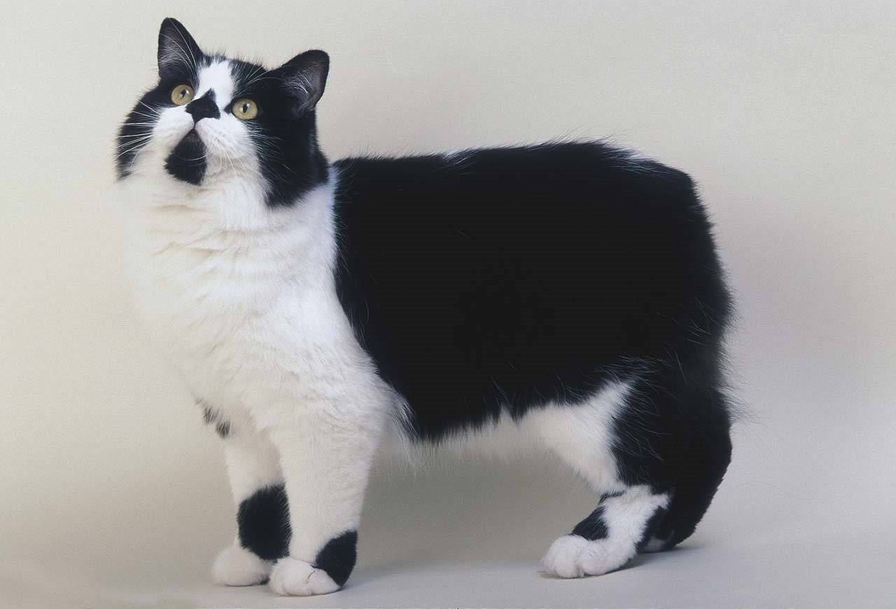 Для бесхвостых котов свойственно множество вариантов расцветки, в число которых входит и черно-белая окраска.