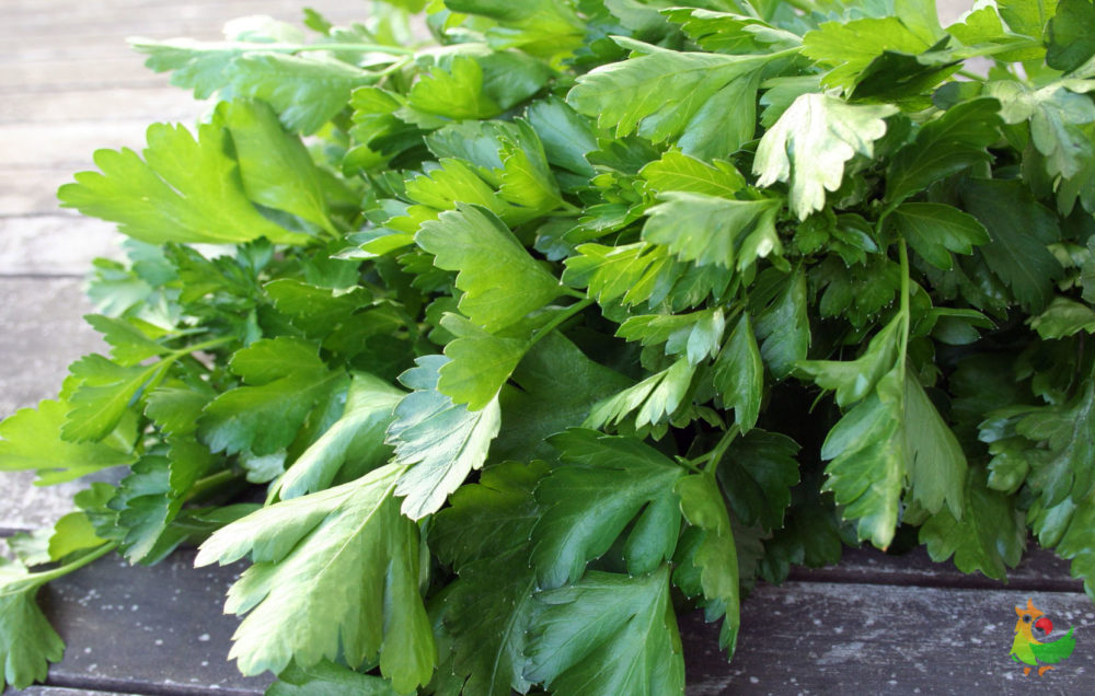 Но как оказалось всё это относится к корнеплоду культуры. Надземная часть не является ядовитой, то есть включать её в рацион пернатых можно, но в небольших количествах. Петрушка содержит фолиевую кислоту, которая благоприятно влияет на сердечно-сосудистую систему.