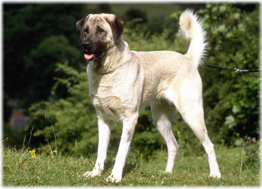 Хвост прямой и немного загнутый. Купировать его не принято. Когда пес насторожен, хвост закручивается кольцом, высоко поднимаясь за спину, особенно у мальчиков. Анатолийская овчарка на фото выглядит одновременно надежной и опасной.