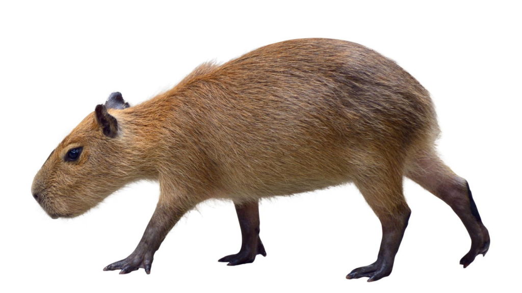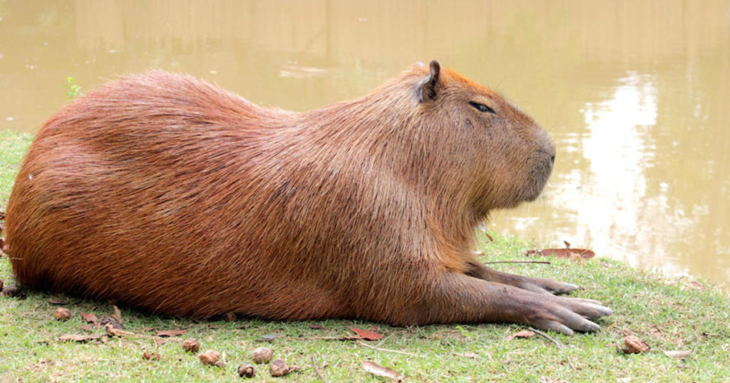 Капибара – самый крупный в мире грызун, который обитает близ рек и озер на территории Южной и Центральной Америки. Это травоядное полуводное животное признано единственным представителем подотряда водосвинковых. Масса взрослой особи достигает 65 килограмм, а длина туловища – 110-130 см. Самки намного крупнее самцов и в период вынашивания потомства весят до 125 кг.