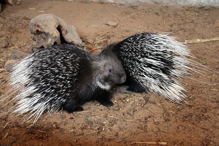 У дикобразов, ведущих одиночный образ жизни, например, хохлатой разновидности, есть свой ритуал. Самки демонстрируют готовность к размножению, зазывая потенциальных брачных партнеров гортанными возгласами. Мужские особи спешат на этот призыв, но им приходится сначала завоевать право на спаривание с самкой. Поединки между собой самцы дикобразы не устраивают, а просто пытаются отогнать конкурентов громкими воплями и пыхтением. Ну а перед самками возбужденные самцы исполняют брачный танец, распушив свои иголки, как павлин хвост. И капризные дамы отдают предпочтение тому партнеру, чей танец был более затейливым и витиеватым.
