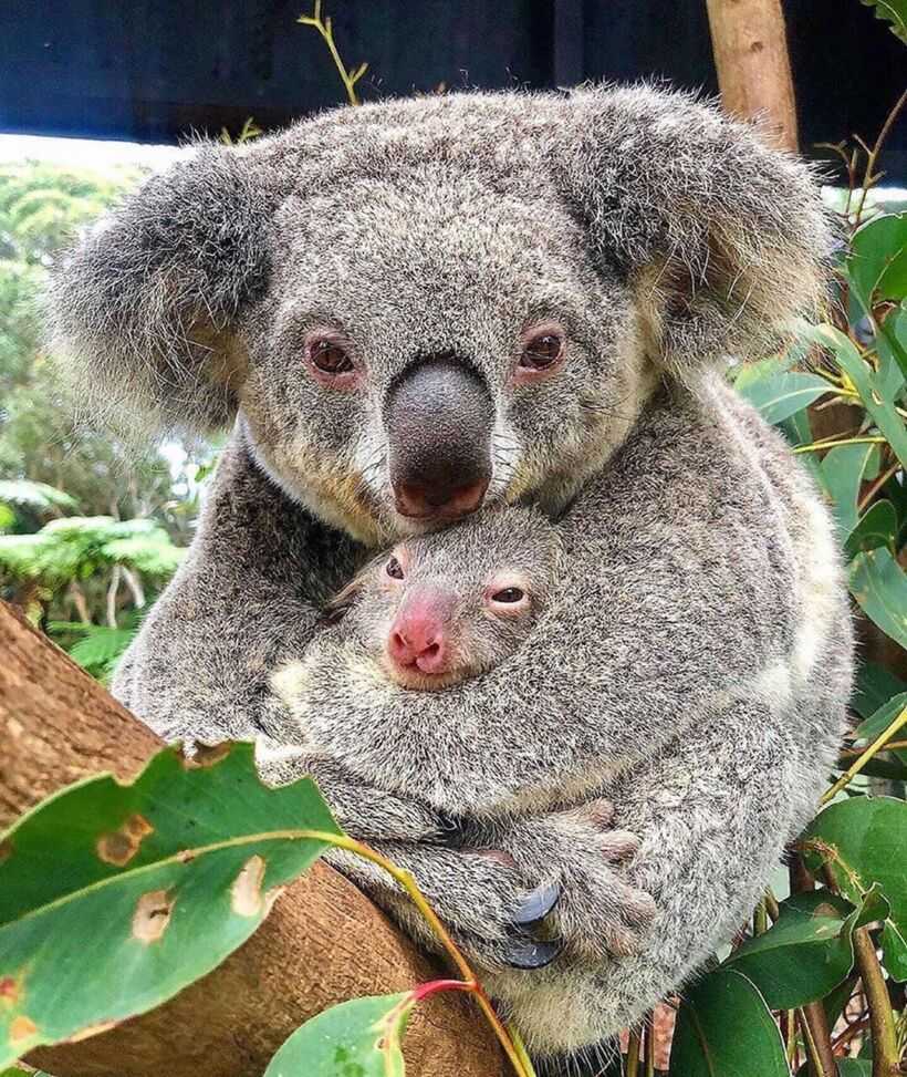 На фото коалы видно, что наличие у самки на животе кожаного мешка, в котором она донашивает детёныша. Порой на разных фото коалы смотрятся совершенно по-разному.