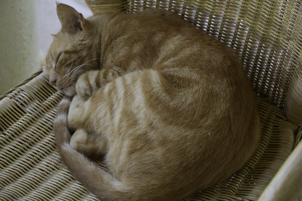 - если животное спит, свернувшись клубком, и при этом прячет нос или закрывает его лапой – это к наступлению морозов;