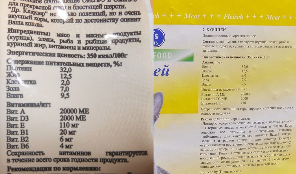 Или же наличие в консервах большого процента злаков, что кошкам не очень полезно. Пример: консервы с курицей, в составе которых «аж целых» 4% куриного мяса.
