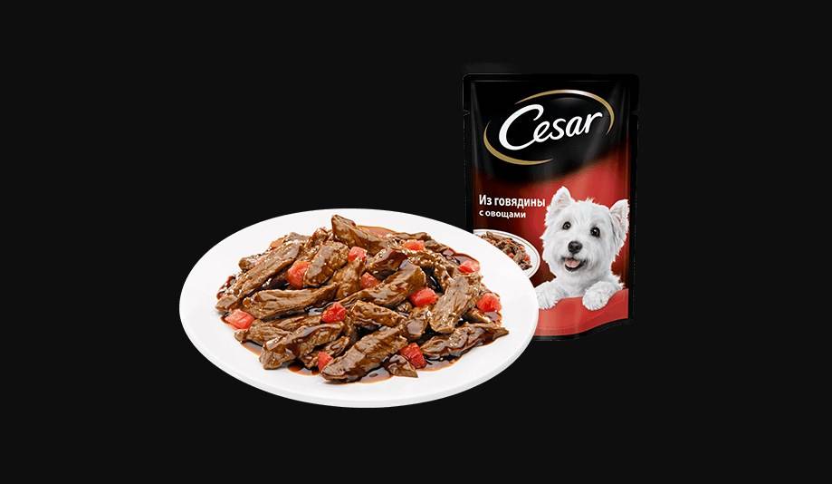 Новинкой в линейке Cesar являются «Аппетитные блюда», которые дополнительно включают в состав овощи. В сочетании с мясом получается питательный тандем: об этом свидетельствуют отзывы не только ветеринаров, но и владельцев собак. Этот корм по достоинству оценивают также за то, что при его производстве не добавляют красители и химикаты, улучшающие вкус.