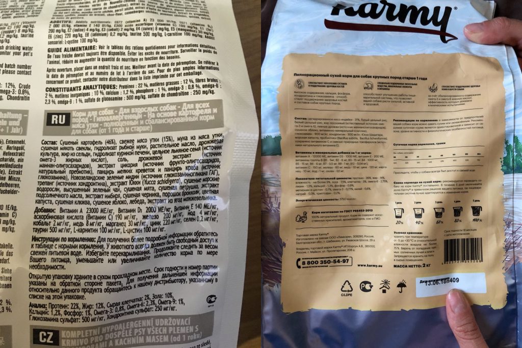 Лучше всего отличия между холистиками и другими кормами видно при изучении составов. Ниже мы разместили фото с упаковок некоторых кормов, смотрим и сравниваем: