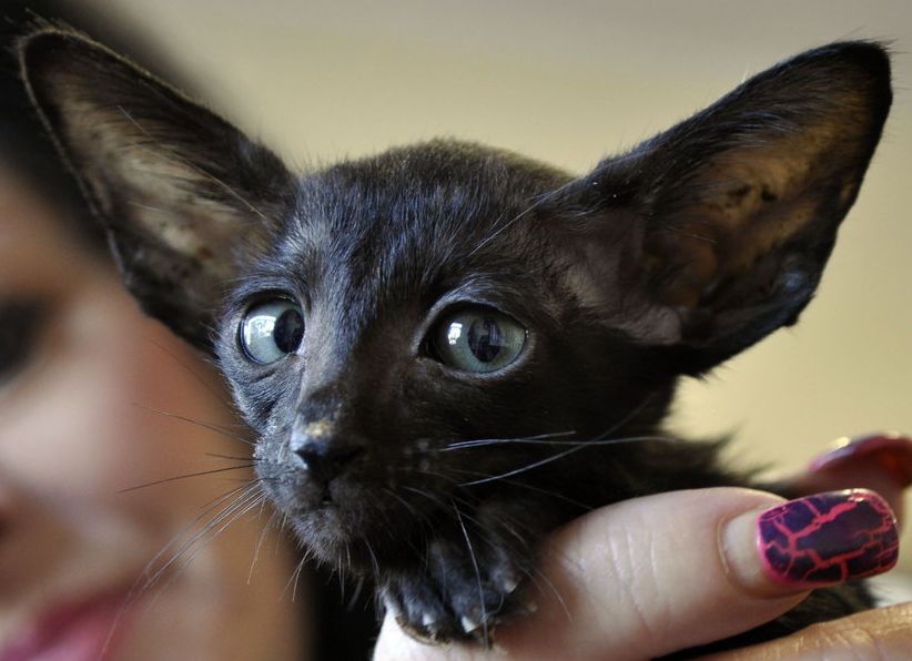 И действительно, так со стороны похоже на детский рисунок ребенка, который пытался нарисовать кошку. Уж сколько мы вариантов котов обсудили тут в блоге, а кто эти ушастые я так и не знаю.Кто то их называет «грузинскими» котами, кто то в шутку «эльфийскими» или «помесью Добби и кота». А что же это на самом деле за порода?Фото 2.История происхождения породы ориенталов началась вместе с их самыми близкими родственниками – сиамскими кошками. Правда, с течением времени обе породы изменялись, поэтому сейчас их представители уже не так сильно похожи друг на друга, как это было раньше. К примеру, на мордочке ориентальных котов никогда не бывает характерной для сиамов черной маски, а их характер гораздо мягче.Фото 3.Предков обоих этих пород впервые завезли в Англию из Азии в конце 19 века, тогда и началась история ориентальных котов, хотя первые их изображения были найдены еще в древних таиландских рукописях. В 1896 году впервые состоялась выставка, на которой присутствовала ориентальная кошка голубого окраса, привезенная из Бангкока. Правда, после этого начался «бум» по сиамским кошкам, и про их родственников со сплошным окрасом шерсти несколько забыли вплоть до середины 20 века. В 60-е годы британские заводчики начали выводить породу, похожую на сиамов, но с другим цветом шерсти, так началась история ориентальной породы кошек, какими их знаем мы.Фото 4.Свое официальное подтверждение порода получила уже через несколько лет, не только в Англии, но и в Америке (официально признали в 1977). Сначала это были полностью белые кошки, затем с окрасом Гавана, а потом и с остальными. Но на момент признания уже существовало более 50 питомников этих котов, и их активно разводили и покупали, несмотря даже на то, что не было официального подтверждения. В России они впервые появились в 1989 году, и тут же завоевали любовь и популярность среди наших соотечественников, наряду с сиамами. Так как происхождение ориентальной кошки тесно связано ссиамской, сейчас они причисляются к одной группе пород, имеют одинаковые стандарты, и их даже можно совместно разводить.Фото 5.Кошки этой породы стройные, мускулистые, с длинной изящной шеей, узкими бедрами и плечами. Передние ноги пропорционально короче задних, лапы овальные, небольшого размера, живот подтянутый. Хвост тонкий, заостренный на кончике, очень длинный.Фото 6.ПсихологияОриентальная кошка – большая умница. Если вы заслужили ее уважение и любовь, предательства от кошки вы не ощутите никогда