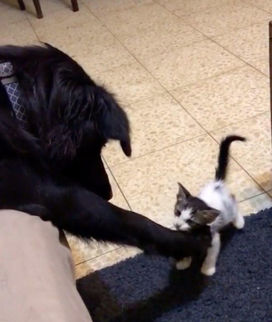 После этого забавного эпизода котишка все время старался выбраться из своего уголка, поэтому девушка решила, что стоит дать ему свободу. Малыш был счастлив и в первый же день направился к Комете, чтобы подружиться с ним. Он стал тереться мордочкой о шерсть питомца и свернулся клубочком, прижимаясь к его лапам. Довольное мурлыканье раздавалось на весь дом!