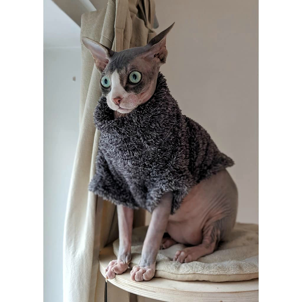 Важно следить, чтобы в доме, где живет эта кошка, не устраивали сквозняков. Корма питомцу выбирают конкретно для бесшерстных кошек