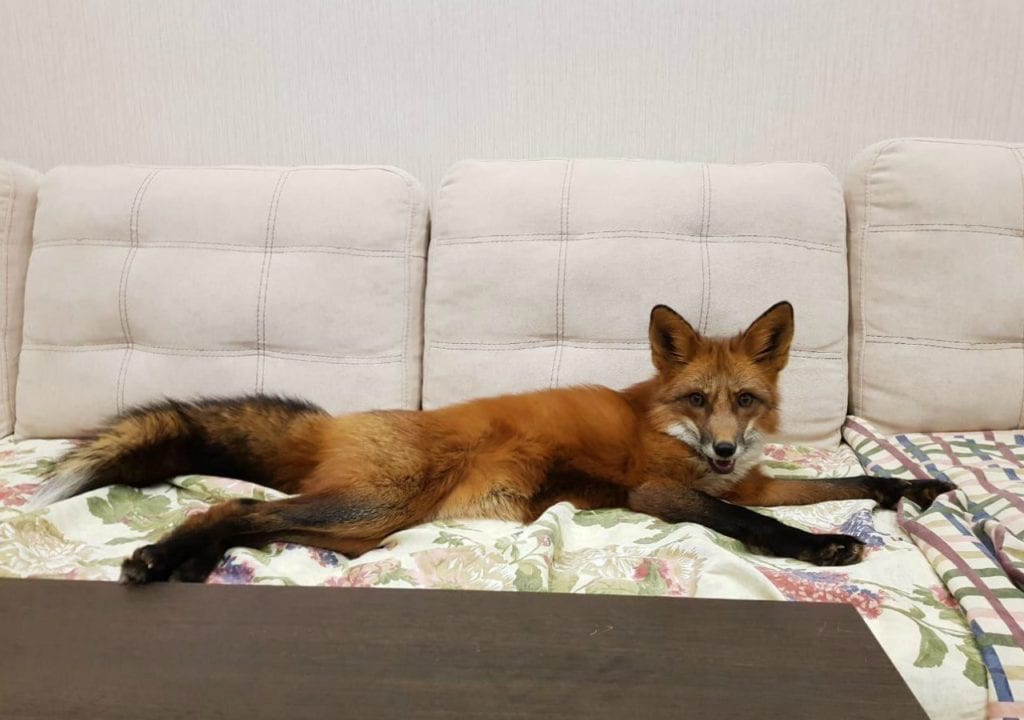 Домашние лисицы любят поваляться на мягком диване