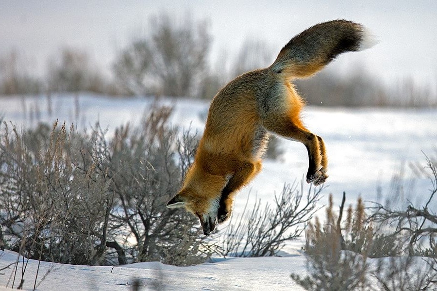 Как лиса охотится
