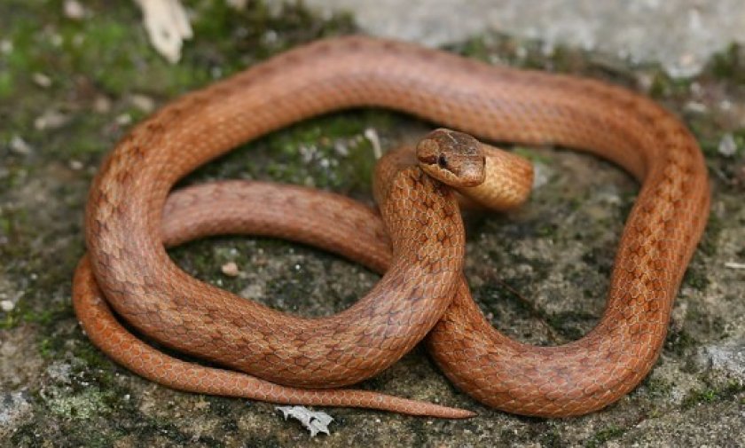- Медянки могут быть абсолютно однотонными. Реже можно увидеть особи с коричневыми или черными пятнышками по всему тельцу. Можно увидеть размытые пятнышки или строгие линии в центре.