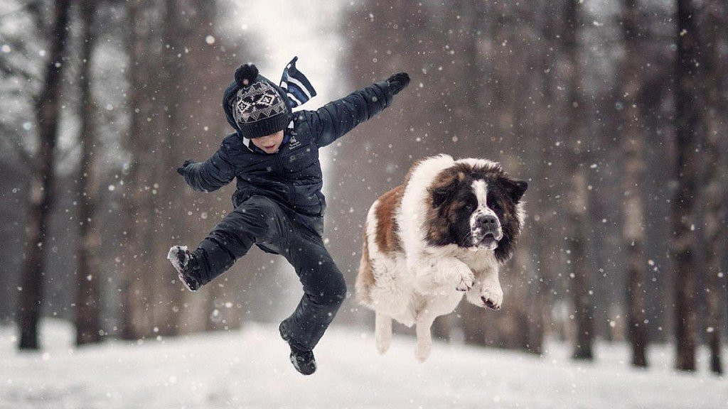 В интернете можно найти массу видеоподтверждений тому, что из московских сторожевых получаются гиперответственные няньки. Но в реальности не все так однозначно. Конечно, «москвич» с удовольствием покатает ваших наследников на саночках, поиграет с ними в догонялки и даже постарается простить им мелкие шалости, но надолго отлучаться и оставлять на такого гиганта несмышленых малышей все же не стоит. Как пример: случайный взмах хвоста этого лохматого секьюрити способен сбить трехлетнего шалуна с ног.